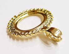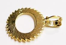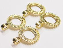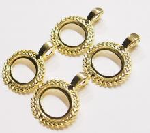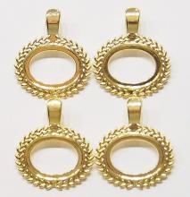 You are buying 4 of 25 mm x 18 mm Horizontal Shiny Gold Plated Pendant Settings, with an Enhancer Bail. The Enhancer bail on these comes open so you can place it on any necklace or cord you want and close it back into place, they are called enhancers. This works great if you have an existing necklace that you want to have a focal point for something to make the whole necklace even more beautiful. I have several other size & shape pendants that have this same enhancer bail. These pendants looks like a wreath or razor edge design, they are not sharp, these are a solid, sturdy and well made pendant for a horizontal 25 mm x 18 mm setting. Everything is solidly made from the setting to the enhancer bail. I have lots of Great Bails, Bracelets, Cameos, Chains, Connectors, Jump Rings, Lockets, Pendants, Pins, Rings & Settings so, just look at all my listings. I have these in 3 other Colors & in a group of 4 Colors as shown in the last picture item #111303528463.