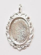 You are buying 4 of 25 mm x 18 mm Silver Plated Oval Scalloped Edge Pendant Settings. They have a scalloped open frame shape around the setting. The outer dimensions are 46x27 mm including the loop at the top. The top has a nice size loop ( 5 x 2.7 mm) for your Chain or Cord or Jump Ring (which I have 3 Colors & 2 Sizes of). These have never been used. These are exactly made for 25 mm x 18 mm. Since they are a solid back, you could go down in size a little if you had an odd size cameo or cab to try & fit. You will not be disappointed in the quality, it is excellent and if I was setting any cameos or cabs, I would use these. These are lightweight & sturdy. They have a gorgeous Victorian look to them. I have lots of Great Bails, Bracelets, Cameos, Chains, Connectors, Jump Rings, Lockets, Pendants, Pins, Rings & Settings so, just look at all my listings. I have these in 3 other Colors & in a group of 4 Colors as shown in the last picture item #111301504352.