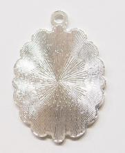 You are buying 4 of 25 mm x 18 mm Oval Shiny Silver Plated Scalloped Flower Design Pendant Settings. They have a scalloped Flowered Design around the pendant. These are Glue in settings and are very sturdy. There is a place to add a small crystals at the top & bottom or just leave them blank, as they look just fine the way they are. These have never been used. These are exactly made for 25 mm x 18 mm. Since they are a solid back, you could go down in size a little if you had an odd size cameo or cab to try & fit. Everything is solidly made from the setting to the pendant bail. I have lots of Great Bails, Bracelets, Cameos, Chains, Connectors, Jump Rings, Lockets, Pendants, Pins, Rings & Settings so, just look at all my listings. I have these in 3 other Colors & in a group of 4 Colors as shown in the last picture item #360805387231, sold separately.
