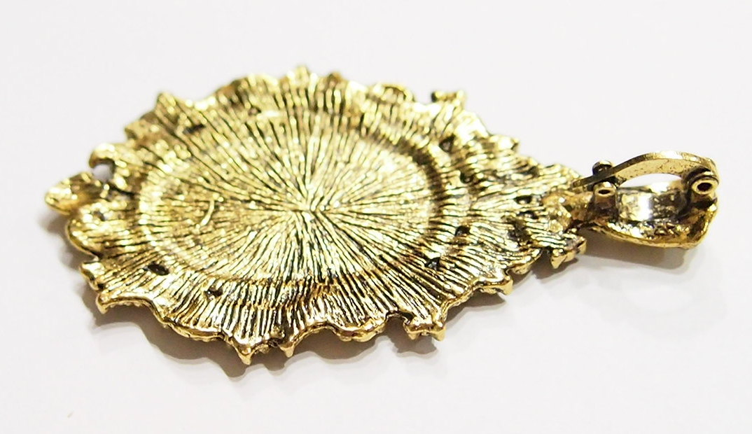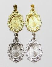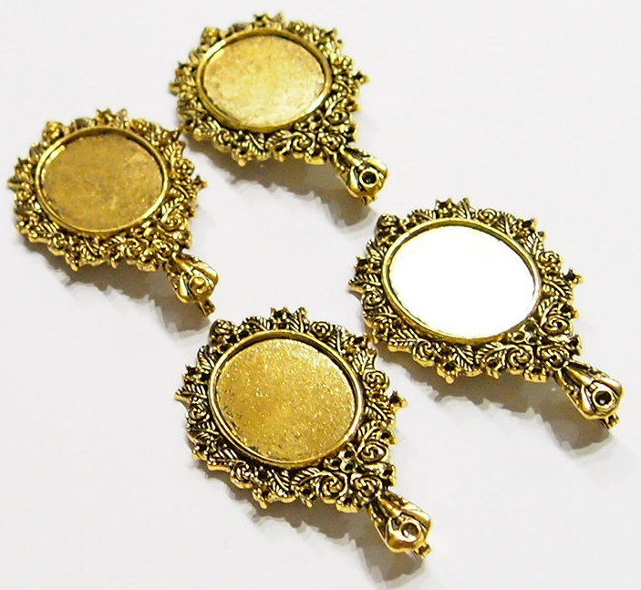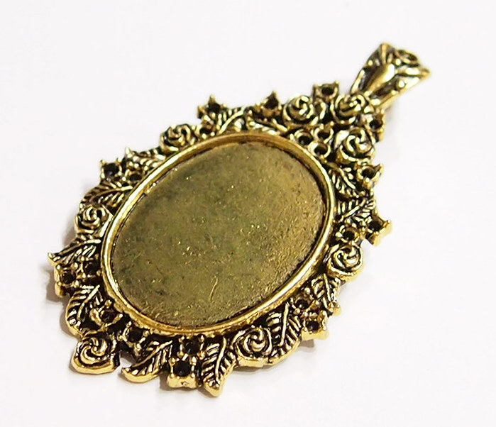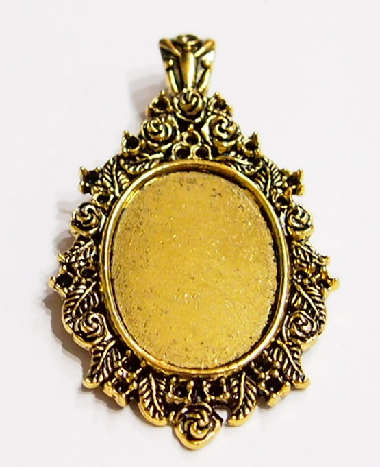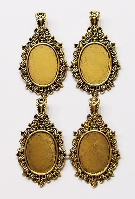You are buying 4 of 30 mm x 22 mm Antique Gold Plated Rose & Floral Enhancer Pendant Settings. These have enhancers bails which will open up to put over anything. If you already have a great necklace & want to add a focal or center piece this is the way to do it. This is a Great Feature. I have several pendants that do this. These are very nice size settings (65 mm x 38 mm Outer Dimensions) and they have a very intricate and gorgeous design of roses and leaves all around the outside of the setting. Also with these, are several places you could add crystals or stones if you wanted or leave them the way they are which is just gorgeous. These settings are originally from the 1900-1930's, I only had a few left and found a company to make these for me and they are stunning. The design is just delicate, but they are very solid, not flimsy like the new ones are. You will not be disappointed in the quality, it is excellent and if I was setting any cameos or cabs, I would use these. These will work great for any cameos or cabs, they will have to be glued in. I have lots of Great Bails, Bracelets, Cameos, Chains, Connectors, Jump Rings, Lockets, Pendants, Pins, Rings & Settings so, just look at all my listings. I have these in 3 other Colors & in a group of 4 Colors as shown in the last 2 pictures item #360926605856. I have this same setting without the enhancer in 25x18 mm item #360471676429 & 40x30 mm item #111232660471. I also have 2 Colors of these in an Acrylic 40x30 mm setting item #