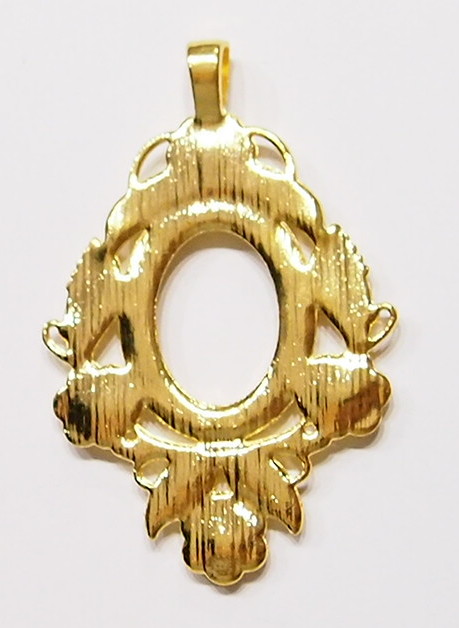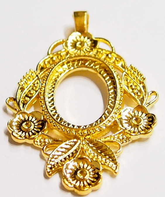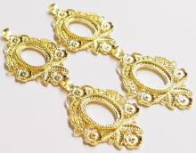 You are buying 4 of 30 mm x 22 mm Gold Plated Victorian Style Floral Pendant Settings. These settings are absolutely gorgeous, they measure (77 mm x 50 mm) with a flower and leaf design, and a big bail too. You will have to glue in any cameos or cabs you want to put into the settings, no prongs and they are very sturdy. These have never been used. These are exactly made for 30 mm x 22 mm. They have a gorgeous Victorian look to them. I have lots of Great Bails, Bracelets, Cameos, Chains, Connectors, Jump Rings, Lockets, Pendants, Pins, Rings & Settings so, just look at all my listings. I have these in 3 other Colors & in a group of 4 Colors as shown in the next to last picture item #362070414587 and are sold separately. These are also offered in a group of 17 different 30x22 mm settings as shown in the last picture item #360471675911 and are also sold separately. I also have these in Antique Silver in 40x30 mm item #360886914776.