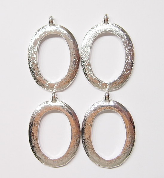 You are buying 4 of 38 mm x 28 mm Shiny Silver Plated Single Band Pendant Settings. These settings are originally from the 1900-1930's, I only had a few left and found a company to make these for me and they are gorgeous. These have a nice sturdy loop that measures 3 mm that will fit most any chain or cord. They are very solid, not flimsy like the new ones are. You will not be disappointed in the quality, it is excellent and if I was setting any cameos, I would use these. The unusual & great thing about these settings is that you can use them on either side. These are for all the odd size cameos or cabs as they are a little under the standard 40x30 mm. These will work great for any cameos or cab, they will have to be glued in. I have lots of Great Bails, Bracelets, Cameos, Chains, Connectors, Pendants, Pins, Rings & Settings so, just look at all my listings. I have these in 2 other Colors Antique Silver & Shiny Gold & in a group of 3 Colors with Cameos included(unset) so you can set them the way you want, as seen in the last picture.