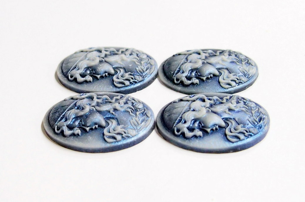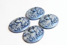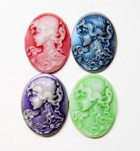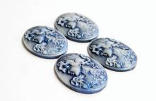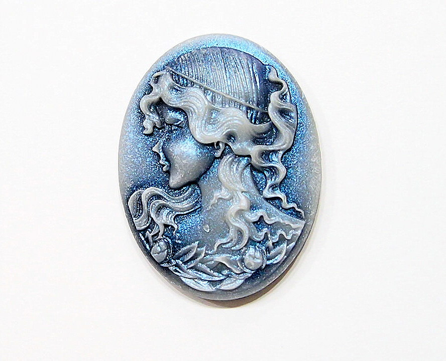 You are buying 4 of 38 mm x 30 mm White into Dark Blue Wavy Hair Woman Cameos. These are so gorgeous, this shows a Flapper lady, facing left with a cool flapper type hat on her head of curls. She also has floral accents too, they are perfect. The girl is White that fades into a gorgeous dark blue background. These measure 38 x 29 mm, since they are a little undersized from the standard 40x30 mm, you will have to center them just a bit. I have several different settings these will fit in to. They look very detailed for their size. I have lots of Great Bails, Bracelets, Cameos, Chains, Connectors, Jump Rings, Lockets, Pendants, Pins, Rings & Settings so, just look at all my listings. I have these in 3 other Colors & in a group of 4 Colors as shown in the last picture item #360471675603, sold separately.