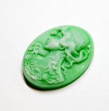You are buying 4 of 38 mm x 29 mm White into Green Flapper Girl Cameos. These are so gorgeous, this shows a Flapper lady, facing left with a cool flapper type hat on her head of curls. She also has floral accents too, they are perfect. The girl is White that fades into a gorgeous green background. These measure 38 x 29 mm, since they are a little undersized from the standard 40x30 mm, you will have to center them just a bit. I have several different settings these will fit in to. They look very detailed for their size. I have lots of Great Bails, Bracelets, Cameos, Chains, Connectors, Jump Rings, Lockets, Pendants, Pins, Rings & Settings so, just look at all my listings. I have these in 3 other Colors & in a group of 4 Colors as shown in the last picture item #360471675603, sold separately.