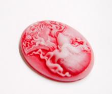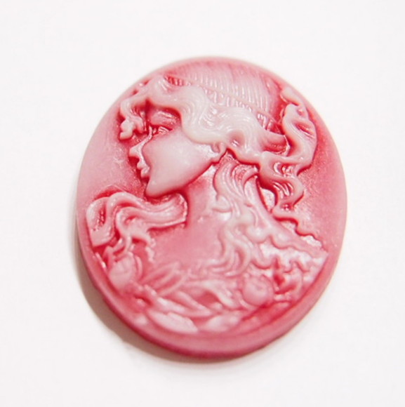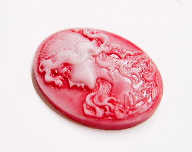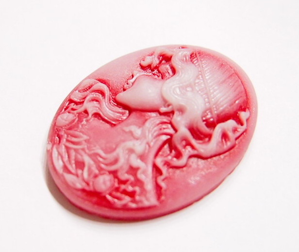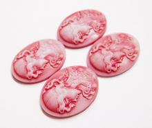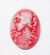 You are buying 4 of 38 mm x 29 mm White into Red Wavy Hair Left Facing Woman Cameos. These are so gorgeous, this shows a Wavy Hair lady, facing left with a cap covering her head of curls. The details are very sharp and stand away from the background, giving it a 3-D effect. These also have floral accents too, they are perfect. The girl is White that fades into a gorgeous Red background. These measure 38 x 29 mm, since they are a little undersized from the standard 40x30 mm, you will have to center them just a bit. I have several different settings these will fit in to. They look very detailed for their size. I have lots of Great Bails, Bracelets, Cameos, Chains, Connectors, Jump Rings, Lockets, Pendants, Pins, Rings & Settings so, just look at all my listings. I have these in 3 other Colors & in a group of 4 Colors as shown in the last picture item #360471675603, sold separately.