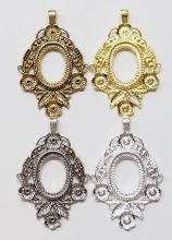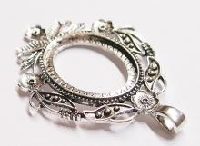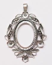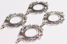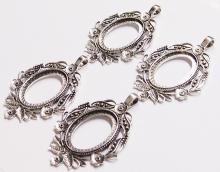 You are buying 4 of 39 mm x 29 mm Antique Silver Plated Victorian Style Floral Pendant Settings. These settings are absolutely gorgeous & measure (80 mm x 57 mm) outside with a flower and leaf design, and a big bail too. You will have to glue in any cameos, cabochons, glass, or whatever you want to put into the settings, no prongs and they are very sturdy. These have never been used. You will not be disappointed in the quality, it is excellent and if I was setting any cameos or cabs, I would use these. They have a gorgeous Victorian look to them. I have lots of Great Bails, Bracelets, Cameos, Chains, Connectors, Jump Rings, Lockets, Pendants, Pins, Rings & Settings so, just look at all my listings. I also have this same setting in 4 Colors of 30x22 mm as shown in the last picture item #362070414587, sold separately.