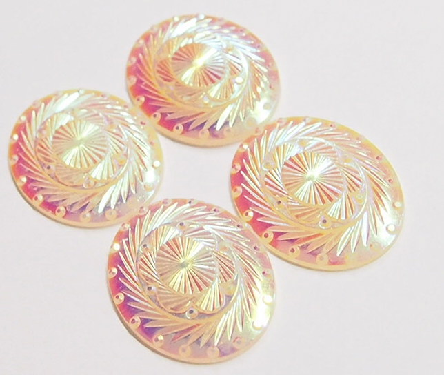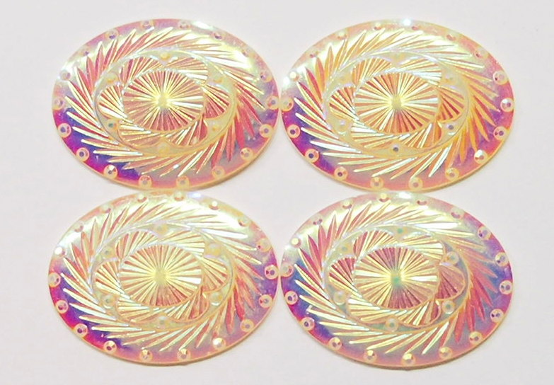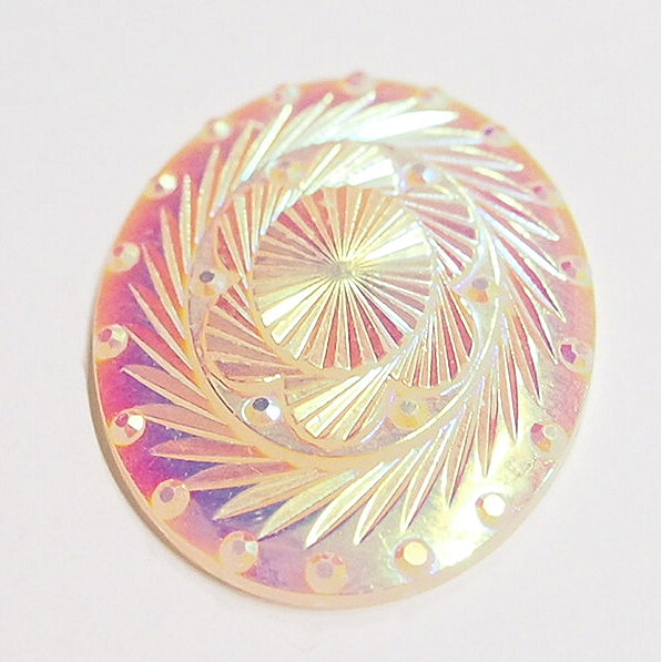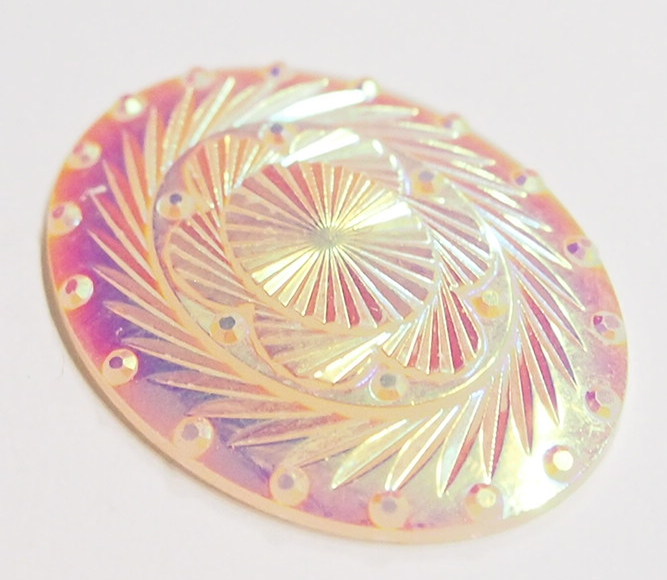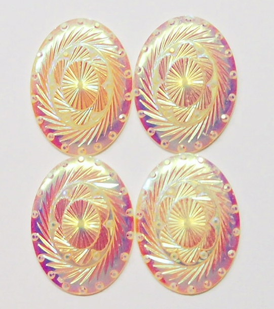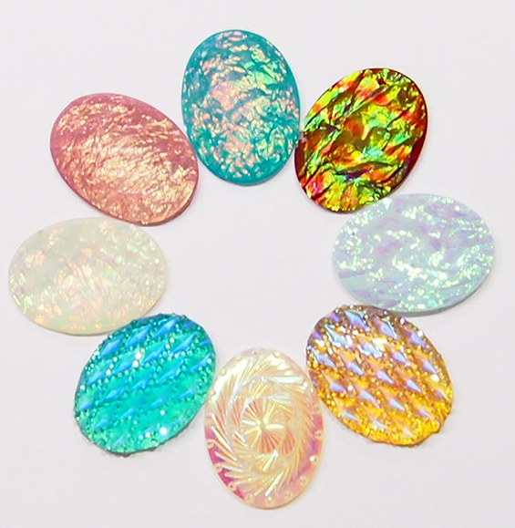 You are buying 4 of 40 mm x 30 mm Acrylic Opal Geometric Pattern Cameos. You will see all different colors every which way you look at these. These have 18 small crystals made into the outer edge that really set these off. The base is almost clear with all the beautiful Opal Colors coming through, a very unusual & beautiful pattern. These are really gorgeous. The molding process of these are just great, no flaws. You can use these either Horizontal or Vertical. I have lots of different settings these will fit in. They look very detailed for their size. I have lots of Great Bails, Bracelets, Cameos, Chains, Connectors, Jump Rings, Lockets, Pendants, Pins, Rings & Settings so, just look at all my listings. I have these in a group of 8 Colors with 7 being faceted item #360883058804 as shown in the last picture.