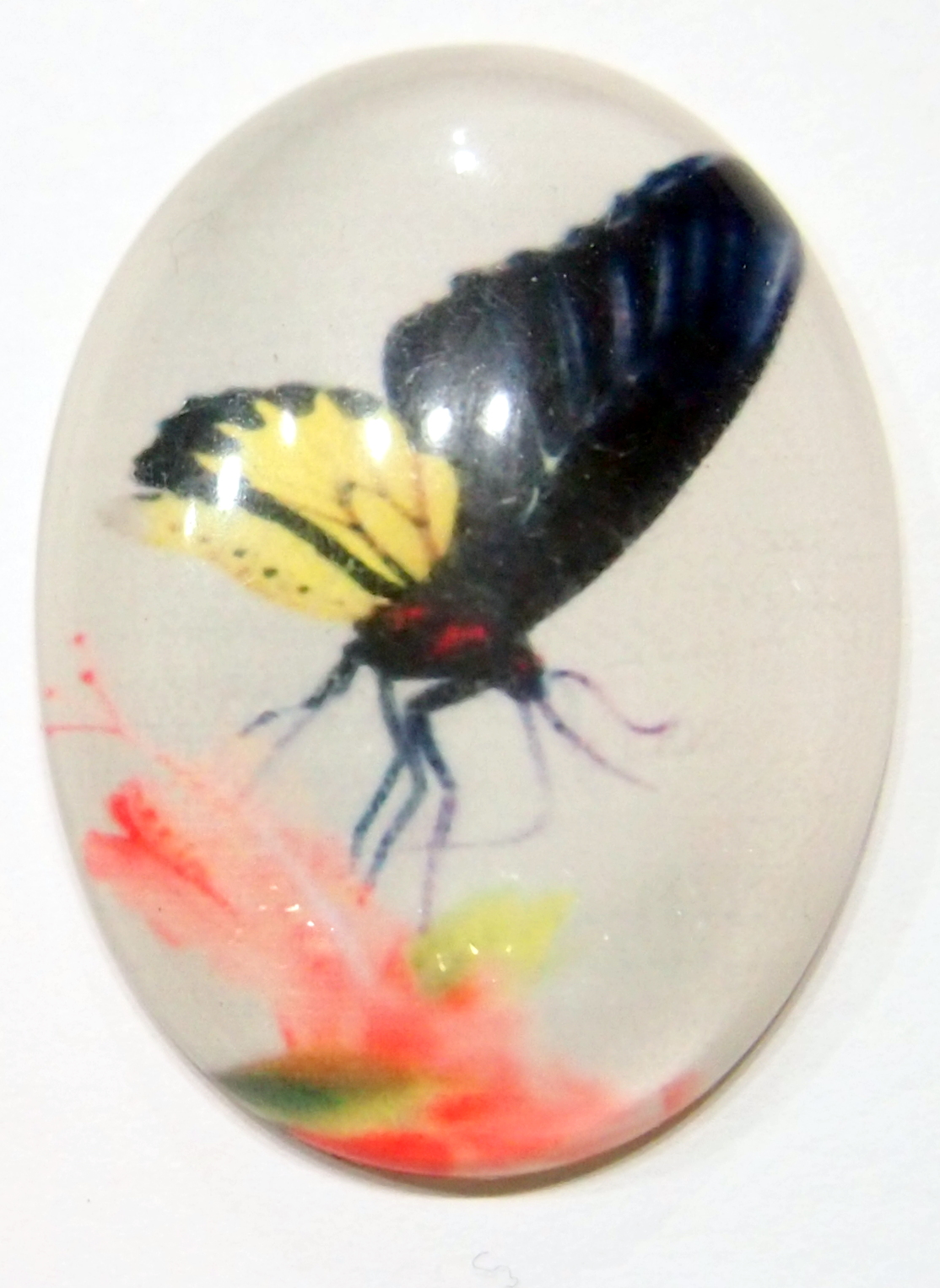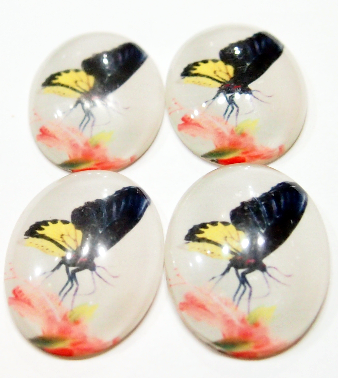 You are buying 4 Vintage Acrylic Cameos. These are so gorgeous, this shows a Yellow Butterfly on top of a orange flower, looking just beautiful and elegant. This has been put on an acrylic background and are not as old as the other cameos I am selling, but I think it is more unique, no flaws and very colorful. I have several different settings these will fit in. They fit into the 40 mm x 30 mm settings I have listed. These are pretty fabulous. They look very detailed for their size. I have lots of great cameos, settings, connectors and pendants so, just look at all my listings.. Sorry for the glare as these are hard to take a picture without the light reflecting off of these gorgeous cameos.