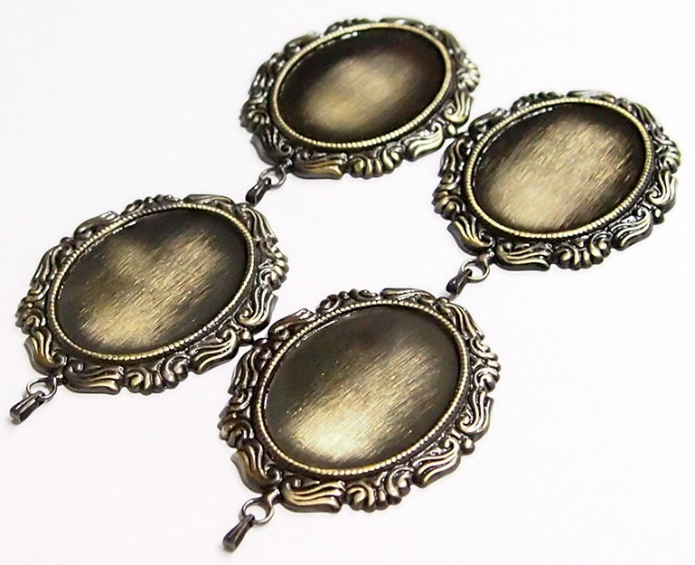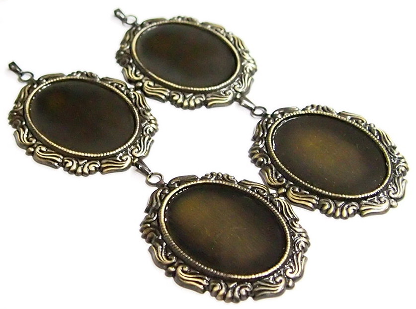 You are buying 4 of 40 mm x 30 mm Antique Gold Plated Angel Wing Pendant Settings. These have a gorgeous angel wing pattern all around the edge of these beautiful settings. These will work great for any cameos or cabochons, they will have to be glued in. The biggest size that will fit in these are 40 mm x 30 mm. You will not be disappointed in the quality, it is excellent and if I was setting any cameos or cabs, I would use these. Since they are a solid back, you could go down in size a little if you had an odd size cameo or cab to try & fit. These are lightweight & sturdy. They have never been used, very nice looking. I have lots of Great Bails, Bracelets, Cameos, Chains, Connectors, Jump Rings, Lockets, Pendants, Pins, Rings & Settings so, just look at all my listings. I have these in 3 other Colors & in a group of 4 Colors as shown in the third from last picture item #111387162618 sold separately. I also have these in 25 x 18 mm in 4 Colors item #360477489289. This setting is included in a group of 12 different Antique Gold settings as shown in the next to last picture item #112623140693, sold separately and the very same group is offered in Antique silver item #361475160163 as shown in the last picture, sold separately.