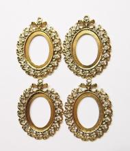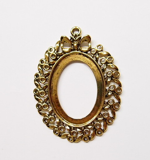 You are buying 4 of 40 x 30 mm Antique Gold Plated Bow Design Pendant Settings. These settings have a very nice Bow Pattern all the way around these Gorgeous settings with one Large one at the top. These settings are originally from the 1900-1930's, I only had a few left and found a company to make these for me and they are gorgeous. The setting dimensions outside are 64 mm in length x 49 mm wide including the loop at the top. The top has a nice size loop (3 mm) for your Chain or Cord or Jump Ring (which I have 3 Colors & 2 Sizes of). The design is just delicate, but they are very solid, not flimsy like some are. You will not be disappointed in the quality, it is excellent and if I was setting any cameos or cabs, I would use these. These will work great for any cameos or cabs, they will have to be glued in. I have lots of Great Bails, Bracelets, Cameos, Chains, Connectors, Jump Rings, Lockets, Pendants, Pins, Rings & Settings so, just look at all my listings. I also have these in Antique Silver item #360471676500. These are also offered in a group of 12 different Antique Gold settings as shown in the last picture item #362009783224, sold separately.