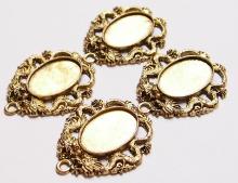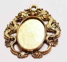 You are buying 4 of 40 mm x 30 mm Antique Gold Plated Decorative Dragon Pendant Settings. These have a Dragon on both sides & are very decorative with lots of ornate designs all around these Gorgeous Settings. The outer dimensions are 68 mm x 62 mm including the Bail. These have a nice size loop at the top that will fit most any Chain or Cord. These are exactly made for 40 mm x 30 mm, since they have a solid back you can put a smaller cameo, cabochon, glass, or whatever you want in these. Everything is solidly made from the setting to the pendant bail. They have a gorgeous Victorian look to them. I have lots of Great Bails, Bracelets, Cameos, Chains, Connectors, Jump Rings, Lockets, Pendants, Pins, Rings & Settings so, just look at all my listings. I also have these in Antique Silver item #360760720110 & in 25x18 mm in 2 Colors. The Antique Silver 25 x 18 mm just like this is item #111567463940 and the Antique Gold is item #111568899296. This setting is included in a group of 12 different Antique Gold settings as shown in the next to last picture item #112623140693, sold separately and the very same group is offered in Antique silver item #361475160163 as shown in the last picture, sold separately.