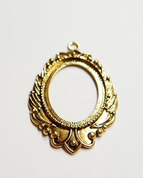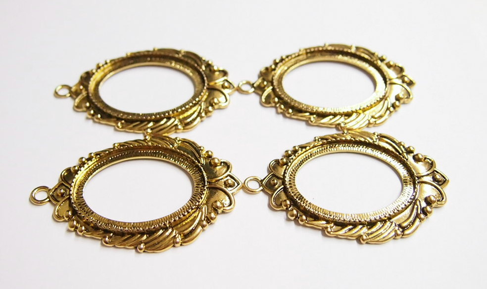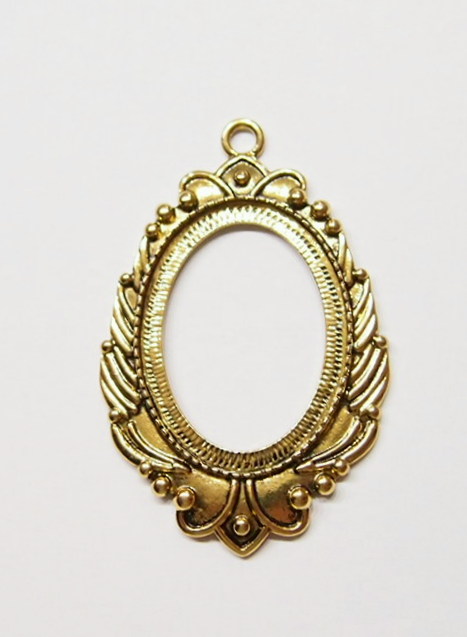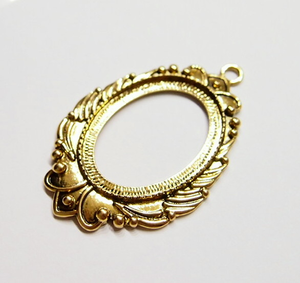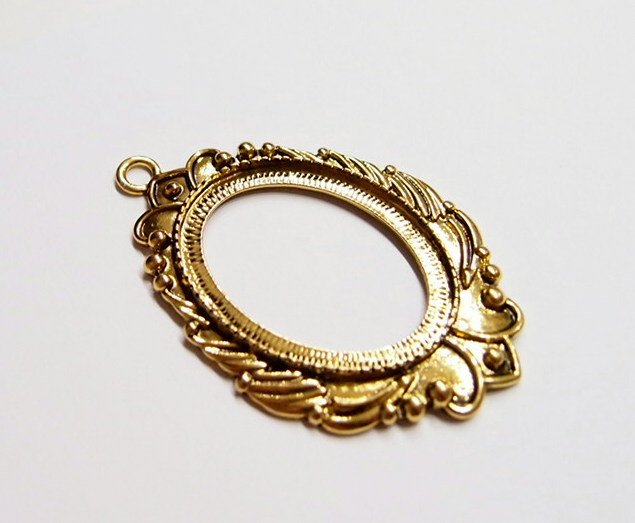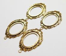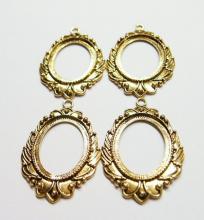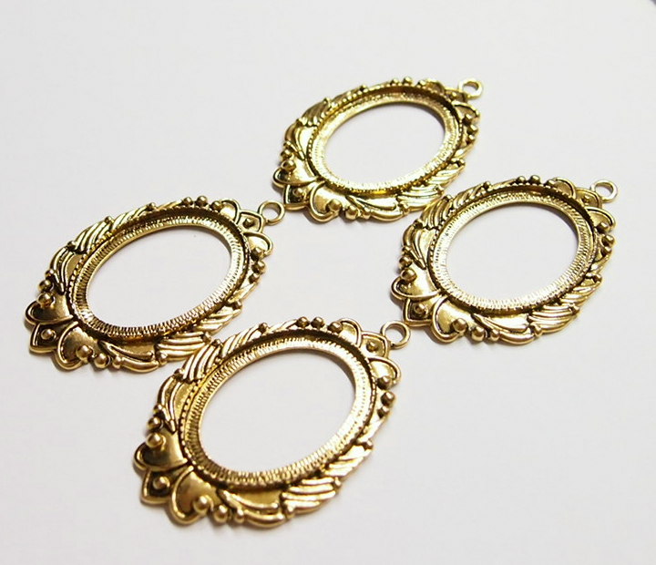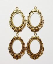You are buying 4 of 40 mm x 30 mm Antique Gold Plated Laurel Wreath Pendant Settings. These settings have a very intricate Laurel Wreath Design. These settings are originally from the 1900-1930's, I only had a few left and found a company to make these for me and they are gorgeous. The outer dimensions measure 65 mm in length including the loop x 43 mm wide. The top has a nice size loop (4 mm) for your Chain or Cord or Jump Ring (which I have 3 Colors & 2 Sizes of). The design is just delicate, but they are very solid, not flimsy like some are. You will not be disappointed in the quality, it is excellent and if I was setting any cameos, cabochons, glass, or whatever you want, I would use these. These will work great for any cameos or cabs, they will have to be glued in. I have lots of Great Bails, Bracelets, Cameos, Chains, Connectors, Jump Rings, Lockets, Pendants, Pins, Rings & Settings so, just look at all my listings. I also have these in Antique Silver item #361344961724 as shown in the last picture, sold separately.