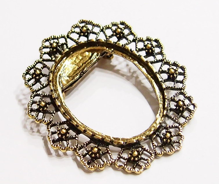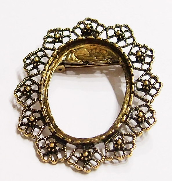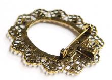 You are buying 4 of 40 mm x 30 mm Antique Gold Plated Old Style Flower Wreath Pin/Pendant Settings. These settings are originally from the 1900-1930's, I only had a few left and found a company to make these for me and they are gorgeous. These have a pin setting near the top and a bail too, so you can use it either way. The design is just delicate, but they are very solid, with a flowery pattern and each one makes into a flower. These measure 40 mm x 30 mm. You will not be disappointed in the quality, it is excellent and if I was setting any cameos or cabs, I would use these. These have a locking latch. These will work great for any cameos or cabs, they will have to be glued in. I have lots of Great Bails, Bracelets, Cameos, Chains, Connectors, Jump Rings, Lockets, Pendants, Pins, Rings & Settings so, just look at all my listings. I have these in 3 other Colors & in a group of 4 Colors as shown in the next to last picture item #111303298103, sold separately. These are also offered in a group of 9 different Antique Gold Art Deco Brooch Pin or Pendant settings group item #112175736245 as shown in the last picture, sold separately.