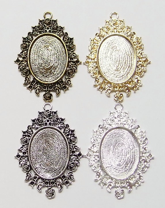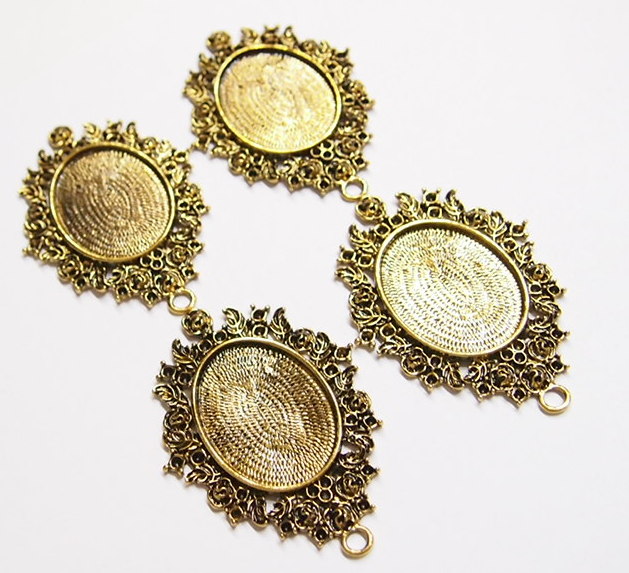 4 of 40x30 mm Antique Gold Roses Pendant Settings, Very Nice