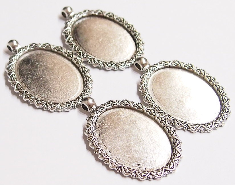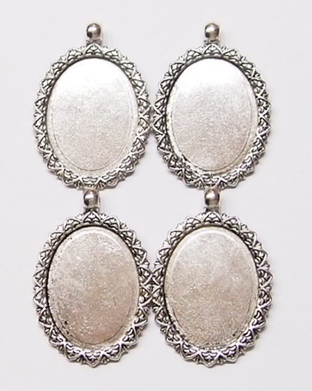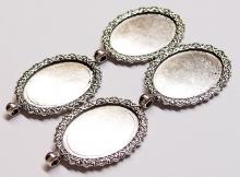 You are buying 4 of 40 mm x 30 mm Antique Silver Plated Crown Pattern Pendant Settings. The design is just delicate with a Victorian look of Crowns all around these beautiful pendant settings. These have a 4 mm loop at the top that will fit most any size chain or cord. Since they are a solid back, you could go down in size a little if you had an odd size cameo or cab to try & fit. These settings are originally from the 1900-1930's, I only had a few left and found a company to make these for me and they are gorgeous. You will not be disappointed in the quality, it is excellent and if I was setting any cameos or cabs, I would use these. These will work great for any cameos or cabs, they will have to be glued in. I have lots of Great Bails, Bracelets, Cameos, Chains, Connectors, Jump Rings, Lockets, Pendants, Pins, Rings & Settings so, just look at all my listings. I also have these in Antique Gold item #111018162015. I also have these in a group of 10 different 40x30 same Color settings as shown in the last picture item #360944312815. I have a group of 12 different settings in 40x30 mm in this Color item #361475160163.