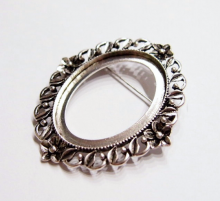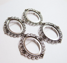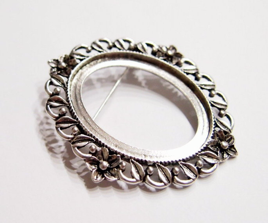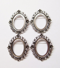 You are buying 4 of 40 mm x 30 mm Antique Silver Plated Four Flower Wreath Pin Brooch Settings. These settings are originally from the 1900-1930's, I only had a few left and found a company to make these for me and they are gorgeous. These have a pin & latch on the back. The design is just delicate, but they are very solid, not flimsy like the new ones are. You will not be disappointed in the quality, it is excellent and if I was setting any cameos, cabochons, glass, or whatever you want, I would use these. These will work great for any cameos or cabochons, they will have to be glued in. I have lots of Great Bails, Bracelets, Cameos, Chains, Connectors, Pendants, Pins, Rings & Settings so, just look at all my listings. These are also offered in a group of 11 different antique silver pin settings as shown in the last picture item #111892806165, sold separately.