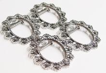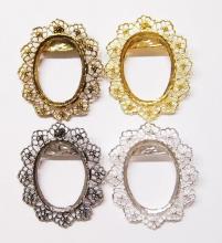 You are buying 4 of 40 mm x 30 mm Antique Silver Plated Old Style Flower Wreath Pin or Pendant Settings. These settings are originally from the 1900-1930's, I only had a few left and found a company to make these for me and they are gorgeous. These have a pin with a latch on the back and a bail too, so you can use it either way (Pin or Pendant). The design is just delicate, but they are very solid, with a flowery pattern all around the outside of these gorgeous Pendant Settings. You will not be disappointed in the quality, it is excellent and if I was setting any cameos or cabs, I would use these. These have a locking latch. These will work great for any cameos or cabs, they will have to be glued in. I have lots of Great Bails, Bracelets, Cameos, Chains, Connectors, Jump Rings, Lockets, Pendants, Pins, Rings & Settings so, just look at all my listings. I have these in 3 other Colors & in a group of 4 Colors as shown in the third from last picture item #111303298103 and are sold separately. These are also offered in a group of 11 different Antique Silver 40x30 Brooch Pin or Pendant settings item #111892806165 as shown in the next to last picture, also sold separately. These are also offered in a group of 9 different antique silver 40x30 mm settings as shown in the last picture item #112451166587, also sold separately.