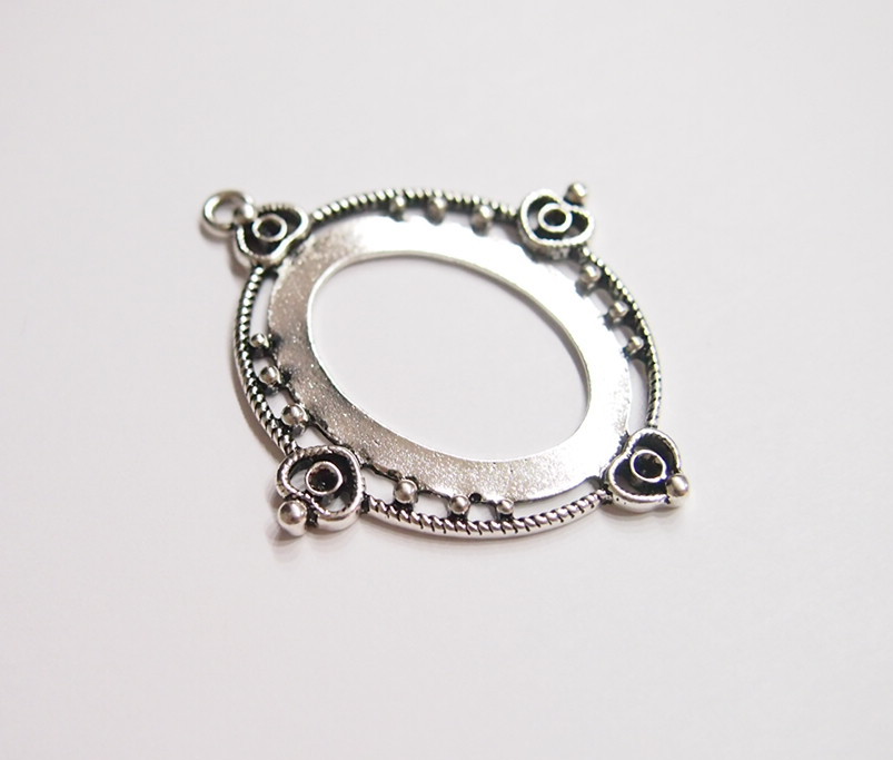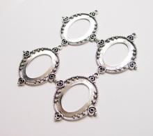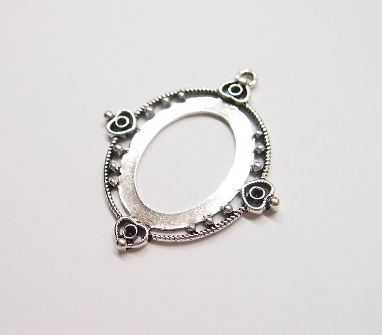 You are buying 4 of 40 mm x 30 mm Antique Silver Plated Twisted Rope and Beaded Heart Pendant Settings. These settings have a very intricate Twisted Rope & Beaded Hearts Design. These have the look of the old Art Deco or Victorian Settings. These settings are originally from the 1900-1930's, I only had a few left and found a company to make these for me and they are gorgeous. The total outer dimensions measure 60 mm in length including the loop at the top x 50 mm wide. The top has a nice size loop (2.2 mm) for your Chain or Cord or Jump Ring (which I have 3 Colors & 2 Sizes of). The design is just delicate, but they are very solid, not flimsy. These have 2 mm round places in each of the four Hearts you could put Crystals or Stones or leave them like they are, Gorgeous. You will not be disappointed in the quality, it is excellent and if I was setting any cameos or cabochons or glass, I would use these. These will work great for any cameos or cabs, they will have to be glued in. I have lots of Great Bails, Bracelets, Cameos, Chains, Connectors, Jump Rings, Lockets, Pendants, Pins, Rings & Settings so, just look at all my listings. I have similar settings in 25x18 mm with a Chained Heart item #360887867902 in 2 Colors.