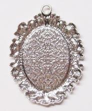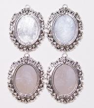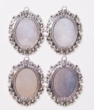 4 of 40x30 mm Antique Silver Vintage Art Deco Open Loops Renaissance Era Pendant Settings, Nice