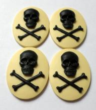 4 of 40x30 mm Black over Cream Skull & Cross Bones Cameos, Nice
