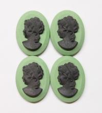 You are buying 4 of 40 mm x 30 mm Black over Green Elegant Victorian Woman Cameos Chalk Like Texture. They are of a Victorian Woman, they are called chalk, because of how they feel and look, very different, black on green, two separate pieces. They measure 40 mm x 30 mm and are from the 1950's. They look very detailed for their size, in fact, she stands out from the background to give it a 3-D look. I have lots of Great Bails, Bracelets, Cameos, Chains, Connectors, Pendants, Pins, Rings & Settings so, just look at all my listings. I have these in 3 other Colors.