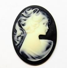 You are buying 4 of 40 mm x 30 mm Cream over Black Classic Ponytail Women Cameos. They are of a Beautiful Victorian Woman with a ponytail facing right, these are molded. The images stand out from the cameo to give you the 3-d effect. They are a Cream color over a Black background. They measure 40 mm x 30 mm. They look very detailed for their size. I have lots of Great Bails, Bracelets, Cameos, Chains, Connectors, Jump Rings, Lockets, Pendants, Pins, Rings & Settings so, just look at all my listings. These are also offered in a group of 10 Colors as shown in the last picture item #360600704578. I offer lots of other Cameos like this and in groups so give them all a look.