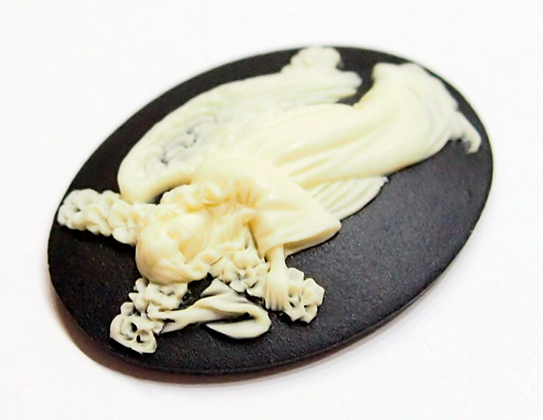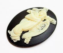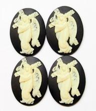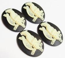 4 of 40x30 mm Cream over Black Cross Carrying Angel Cameos, Nice