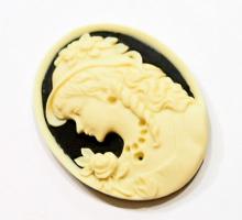 4 of 40x30 mm Cream over Black Victorian Woman with Hat Cameos, Nice