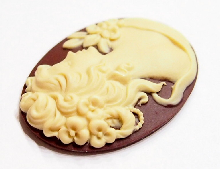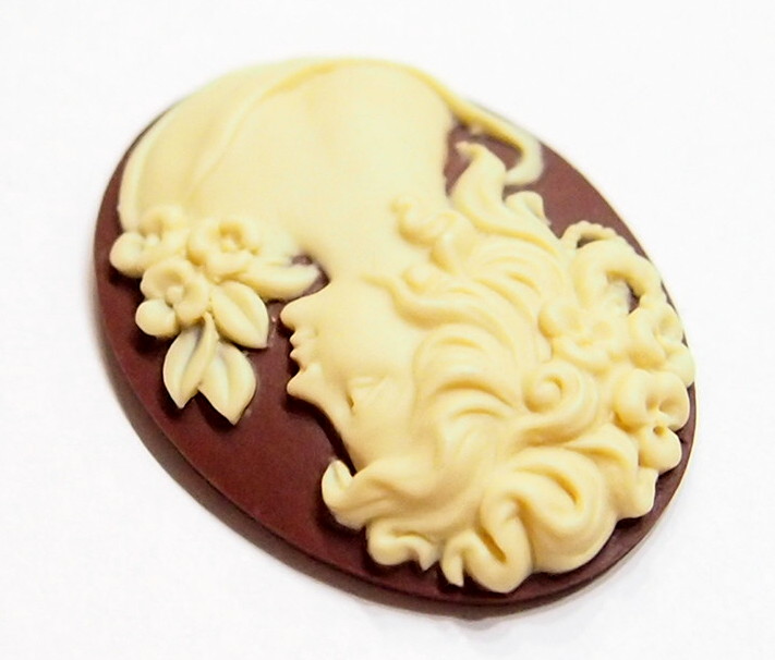 You are buying 4 of 40 mm x 30 mm Cream over Brown Floral Stunning Grecian/Muse Lady Cameos. They are of a Gorgeous Grecian Woman with flowers decorating her hair, she has a low cut gown on with a floral design at the shoulder, very beautiful, the molding is very well done. They are a gorgeous Cream on a Brown Background. They measure 40 mm x 30 mm. They look very detailed for their size, in fact, they stand out from the background to give it a 3-D look. They have never been used. I have lots of Great Bails, Bracelets, Cameos, Chains, Connectors, Jump Rings, Lockets, Pendants, Pins, Rings & Settings so, just look at all my listings. I have these in 3 other Colors & in a group of 10 Colors as shown in the last picture item #111589921829 and are sold separately. I have this same cameo with a High Top Gown & also have these & several other Colors in 25x18 mm.