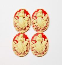 You are buying 4 of 40 mm x 30 mm Cream over Carnelian Angel with 3 Children Angels Cameos. These are so gorgeous, this shows a Beautiful full body Female Angel with three playful Angels around her. These are a cream color on a carnelian background, even an outline of the cameo is in cream. The molding process of these are just great, no flaws. These measure 40 mm x 30 mm. They look very detailed for their size. I have lots of Great Bails, Bracelets, Cameos, Chains, Connectors, Pendants, Pins, Rings & Settings so, just look at all my listings. I have these in 4 other Colors & in a group of 5 Colors as shown in the last picture item #360724130921. I also have several other styles of angels in this size and 25x18 mm.