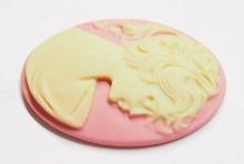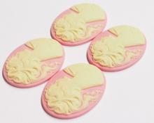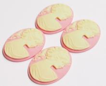 4 of 40x30 mm Cream over Pink Ponytail Lady Cameos, Nice
