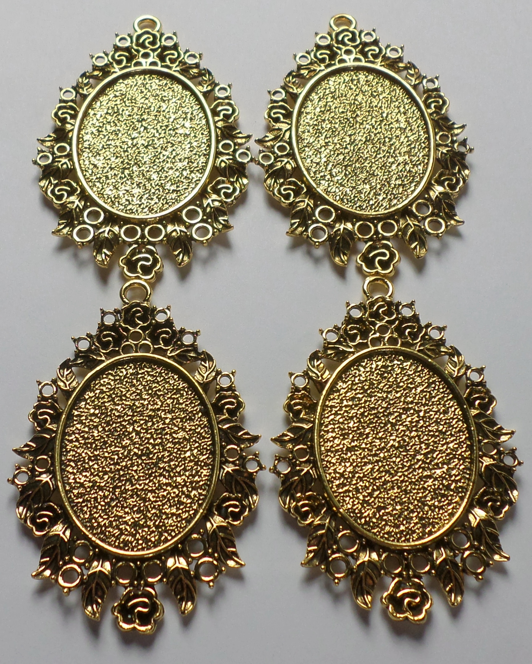 4 of 40x30 mm Fancy Antique Gold Roses Pendant Settings, Very Nice
