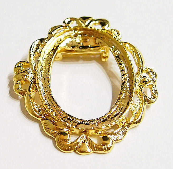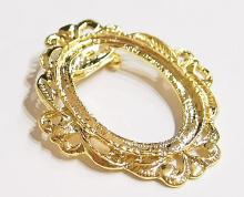 You are buying 4 of 40 mm x 30 mm Gold Plated Old LeFleur Design Pin or Pendant Settings. These settings are originally from the 1900-1930's, I only had a few left and found a company to make these for me and they are gorgeous. These have a pin setting near the top and a bail too, so you can use it either way. The design is just delicate, but they are very solid, with a LeFleur pattern. These measure 40 mm x 30 mm. You will not be disappointed in the quality, it is excellent and if I was setting any cameos, cabochons, glass, or whatever you want, I would use these. These have a locking latch. These will work great for any cameos or cabs, they will have to be glued in. I have lots of Great Bails, Bracelets, Cameos, Chains, Connectors, Jump Rings, Lockets, Pendants, Pins, Rings & Settings so, just look at all my listings. I have these in 3 other Colors & in a group of 4 Colors as shown in the last picture item #111306232215, sold separately. I also offer the LeFleur pattern in 4 Colors of 14x10 mm Rings, item #360471677845.