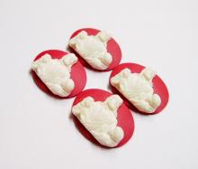 You are buying 4 of 40 mm x 30 mm Horizontal White over Burgundy Jesus with Children Cameos. They are of Jesus with his arms around two children, the molding is very well done. They are a gorgeous White on Burgundy background. They measure 40 mm x 30 mm. They look very detailed for their size, in fact, the Jesus and the children stand way out from the background to give it a 3-D look. I have lots of Great Bails, Bracelets, Cameos, Chains, Connectors, Pendants, Pins, Rings & Settings so, just look at all my listings.