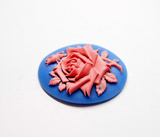 You are buying 4 of 40 mm x 30 mm Pink over Sky Blue Single Rose & Bud Cameos. These are so gorgeous, this shows a beautiful Rose with Bud and Leaves. The rose is Pink on a Sky Blue background. This is a very nice color combination. The Rose practically fills up the entire cameos by itself. The molding process of these are just great, no flaws. You can use these Horizontal or Vertical. I have several different settings these will fit in. They measure 40 mm x 30 mm. The details are very sharp and stand away from the background, giving it a 3-D effect. They look very detailed for their size. I have lots of Great Bails, Bracelets, Cameos, Chains, Connectors, Jump Rings, Lockets, Pendants, Pins, Rings & Settings so, just look at all my listings. I have these in 3 other Colors & in a group of 4 Colors as shown in the next to last picture item #111368825037 and a group of 12 Colors as shown in the last picture item #110911248686. I also have several other Colors of Flowers in 14x10, 18x13, 25x18, & 40x30 mm.
