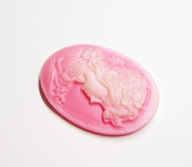 You are buying 4 of 40 mm x 30 mm White that fades into Pinkish Background Wispy Hair Woman Cameo. They are of a Victorian Lady, very elegant Looking with wispy hair and flowers in her hair, the molding is very well done. They are a light White that fades into a pink background. These have a really nice Color combination. They measure 40 mm x 30 mm. They look very detailed for their size, in fact, the Lady stands out from the background to give it a 3-D look. I have lots of Great Bails, Bracelets, Cameos, Chains, Connectors, Jump Rings, Lockets, Pendants, Pins, Rings &Settings so, just look at all my listings. I have these in 5 other Colors & in a group of 6 Colors as shown in the last picture item # sold separately.