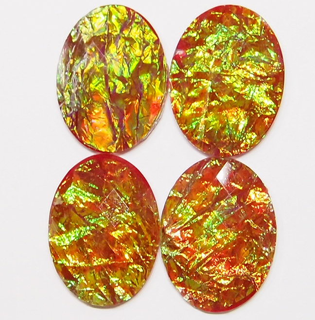You are buying 4 of 40 mm x 30 mm Red Hot Ice Acrylic Faceted Cameos. These look like opals but are made of Acrylic. You will see all different colors every which way you turn these or look at them. The base is red but the greens and yellows makes it look orange, very pretty. These are really nice. The molding process of these are just great, no flaws. You can use these either Horizontal or Vertical. These measure 40 mm x 30 mm & are all Faceted with beautiful colors. I have several different settings these will fit in. They look very detailed for their size. I have lots of Great Bails, Bracelets, Cameos, Chains, Connectors, Jump Rings, Lockets, Pendants, Pins, Rings & Settings so, just look at all my listings. These are included in a group of 8 different colors of 40x30 mm cameos as shown in the last picture item #360883058804. I also offer 2 Colors similar to these in 25x18 mm item #111721185172.