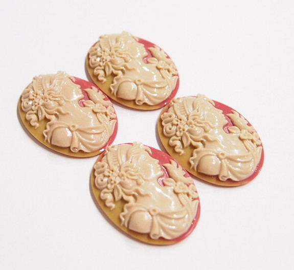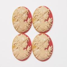 You are buying 4 of 40 mm x 30 mm Shell Color Grecian/Muse with Bird Cameos. These are so gorgeous, this shows a beautiful Mythology Muse or Grecian woman in a gown with her hair with a headband and a bird in front of her, they are perfect. The woman is a Shell Color and is just gorgeous. They measure 40 mm x 30 mm. The molding process of these are just great, no flaws. I have several different settings these will fit in. These are pretty fabulous. They look very detailed for their size. I have lots of Great Bails, Bracelets, Cameos, Chains, Connectors, Jump Rings, Lockets, Pendants, Pins, Rings & Settings so, just look at all my listings. I have these in 5 other Colors & in a group of 6 Colors as shown in the next to last picture item #110911248601. These are also offered in a group of 10 different 40x30 cameos as shown in the last picture item #360471677811 and are sold separately. I also have several Colors of these in 25x18 mm. I also have these in 25x18 mm.