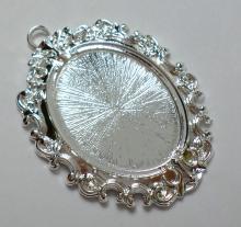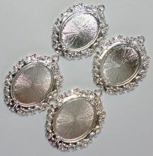You are buying 4 of 40 mm x 30 mm Shiny Silver Plated Vintage Art Deco Open Loops Renaissance Style Pendant Settings. The outside measures 67 x 50 mm including the loop at the top. The top has a nice size loop (4.4 mm) for your Chain or Cord or Jump Ring (which I have 3 Colors & 2 Sizes of). These settings are originally from the 1900-1930's, I only had a few left and found a company to make these for me and they are gorgeous. Cameos, cabochons, glass, or whatever you want, will have to be glued in the settings, no prongs and they are very sturdy. The design is very pretty with an open loop that has a Renaissance era style pattern all around the setting. These have never been used. Since they are a solid back, you could go down in size a little if you had an odd size something to try & fit. They have a gorgeous Victorian look to them. You will not be disappointed in the quality, it is excellent and if I was setting any cameos, cabochons, or glass. I would use these. I have lots of Great Bails, Bracelets, Cameos, Chains, Connectors, Jump Rings, Lockets, Pendants, Pins, Rings & Settings so, just look at all my listings. I also offer these in a group of 4 different Colors item #113156135368, as shown in the last picture, sold separately.