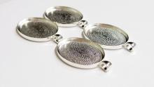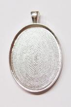 You are buying 4 of 40 mm x 30 mm Shiny Silver Plated Oval Deep Band Pendant Settings. The band is 3 mm deep. These settings are originally from the 1900-1930's, I only had a few left and found a company to make these for me and they are gorgeous. The top has a nice size loop (6.5 x 4.7 mm) for your Chain or Cord or Jump Ring (which I have 3 Colors & 2 Sizes of). These are perfect if you are making your own Cameos as the Glass Domes that I have in 40x30 item #110930805504 fit perfectly in these. Since they are a solid back, you could go down in size a little if you had an odd size cameo or cab to try & fit. You will not be disappointed in the quality, it is excellent and if I was setting any cameos or cabs, I would use these. These will work great for any cameos or cabs, they will have to be glued in. I have lots of Great Bails, Bracelets, Cameos, Chains, Connectors, Jump Rings, Lockets, Pendants, Pins, Rings & Settings so, just look at all my listings. I have these in 3 other Colors & in a group of 4 Colors as shown in the last picture item #112531883053, sold separately. I also offer a 25 mm round setting with a deep band like these, item #110911248666.