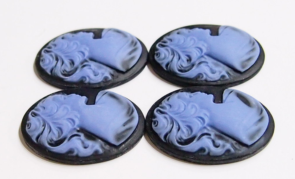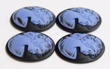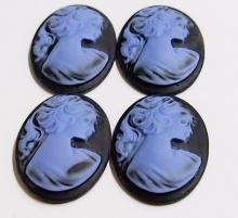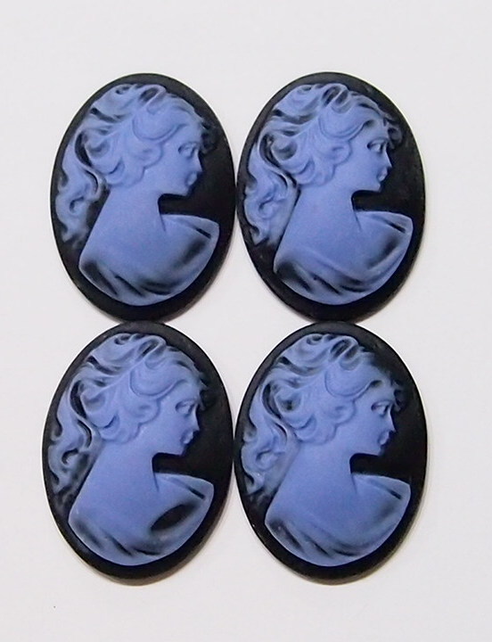 You are buying 4 of 40 mm x 30 mm Violet Purple over Black Classic Ponytail Women Cameos. They are of a Beautiful Victorian Woman with a ponytail facing right, these are molded. The images stand out from the cameo to give you the 3-d effect. They are a Violet Purple color to a Black background. They measure 40x30 mm. They look very detailed for their size. I have lots of Great Bails, Bracelets, Cameos, Chains, Connectors, Jump Rings, Lockets, Pendants, Pins, Rings & Settings so, just look at all my listings. I have these in 4 other Colors & in a group of 10 Colors as shown in the last picture.