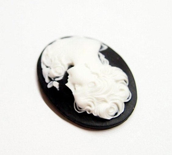You are buying 4 of 40 mm x 30 mm White over Black Corsage Woman Cameos. They are of a Beautiful Victorian woman with a pearl necklace and flowers on the side of her dress. The details are very sharp and stand away from the background, giving it a 3-D effect. They are white in color, the background is a Black. These measure 40 mm x 30 mm. They look very detailed for their size. I have lots of Great Bails, Bracelets, Cameos, Chains, Connectors, Jump Rings, Lockets, Pendants, Pins, Rings & Settings so, just look at all my listings. I have these in 2 other Colors & in a group of 6 Colors as shown in the last picture item #111963501156, sold separately.