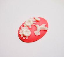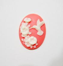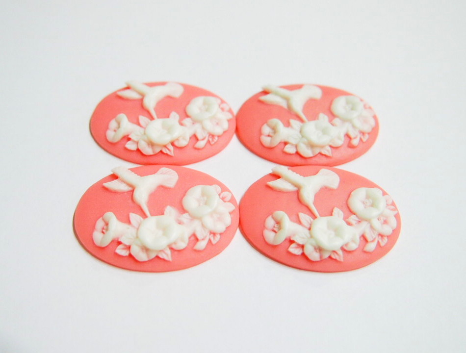 You are buying 4 of 40 mm x 30 mm White over Coral Pink Hummingbird in Flowers Cameos. They are of a gorgeous hummingbird in mid flight that is after a flower. The images stand out from the cameo to give them the 3-D effect. These are a White over a Coral Pink background and they measure 40 mm x 30 mm. They look very detailed for their size.I have lots of Great Bails, Bracelets, Cameos, Chains, Connectors, Jump Rings, Lockets, Pendants, Pins, Rings & Settings so, just look at all my listings. I also offer a group of 8 different 40x30 mm animal cameos as shown in the last picture item #111956841273, sold separately. I have lots of other animal cameos in several sizes & Colors.