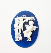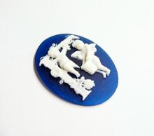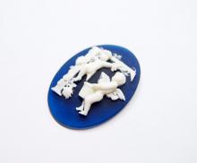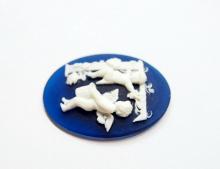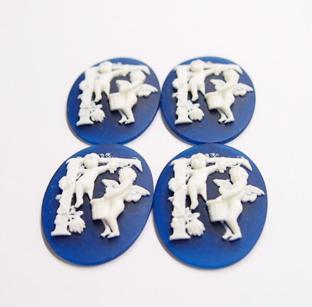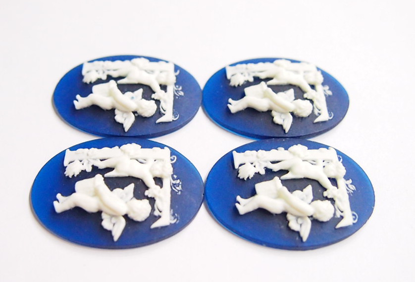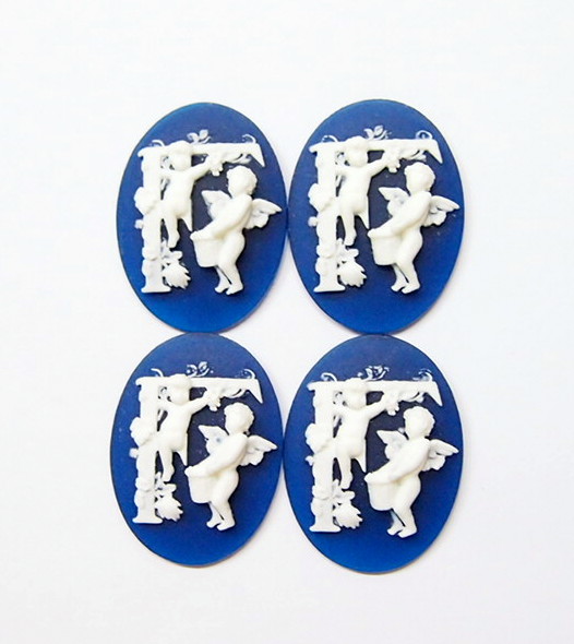You are buying 4 of 40 mm x 30 mm White over Dark Blue Letter F with Cherubs Playing Cameos. These show two cute cherubs or small angels helping to make the design of the initial F. One has a basket and the other is climbing the letter to get the fruit off of the letter. They measure 40 mm x 30 mm. They look very detailed for their size, in fact, the letter F and cherubs stand away from the background to give it a 3-D look. I have lots of Great Bails, Bracelets, Cameos, Chains, Connectors, Jump Rings, Lockets, Pendants, Pins, Rings & Settings so, just look at all my listings. I have several other Letter Cameos in the same Color scheme.
