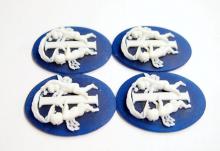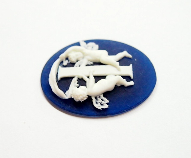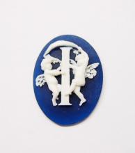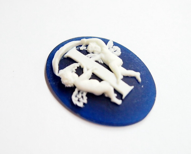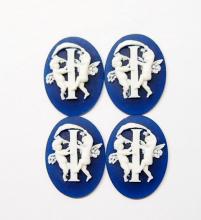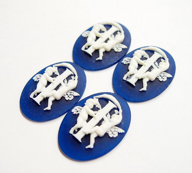 You are buying 4 of 40 mm x 30 mm White over Dark Blue Letter I with Cherubs Playing Cameos. These show two cute cherubs or small angels helping to make the design of the initial I. One has a basket and the other is climbing the letter to get the top. They measure 40 mm x 30 mm. They look very detailed for their size, in fact, the letter I and cherubs stand away from the background to give it a 3-D look. I have lots of Great Bails, Bracelets, Cameos, Chains, Connectors, Jump Rings, Lockets, Pendants, Pins, Rings & Settings so, just look at all my listings. I have several other Letter Cameos in the same Color scheme.