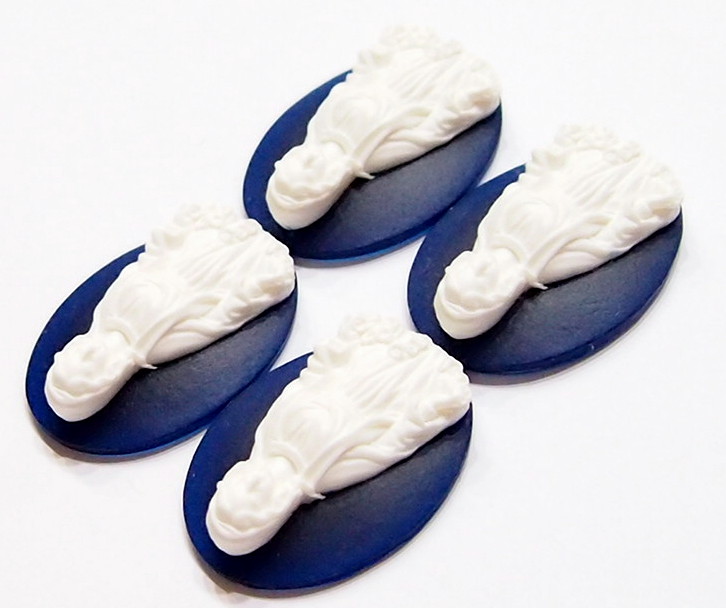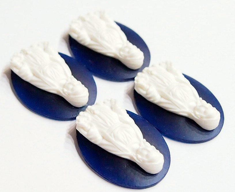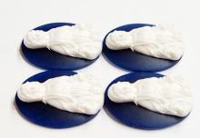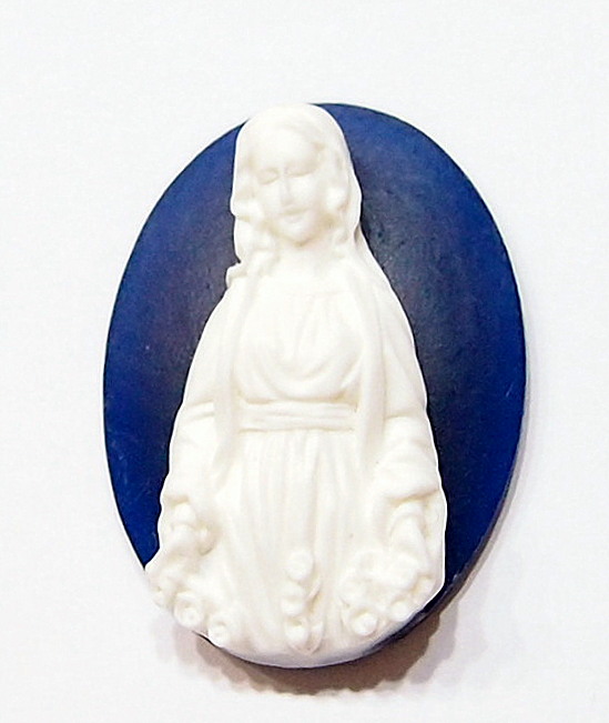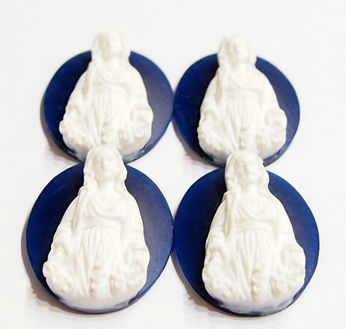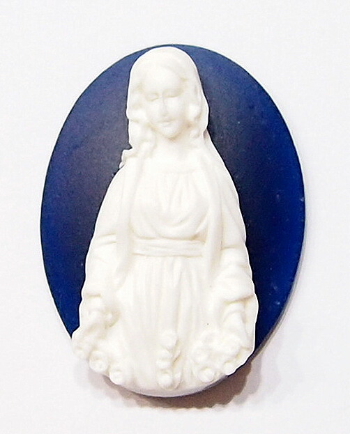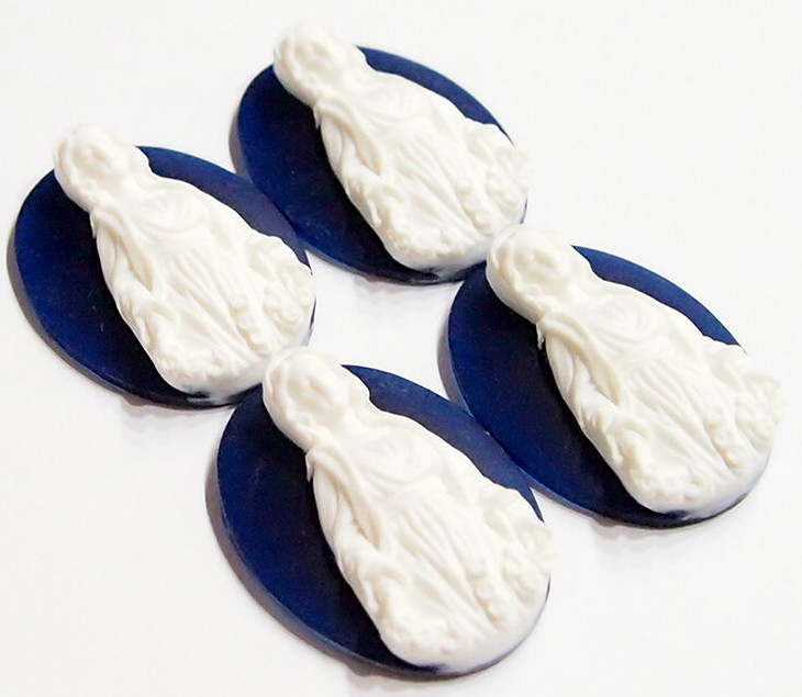 You are buying 4 of 40 mm x 30 mm White over Dark Blue Full Body Standing Virgin Mary Cameos. They are of the Beautiful Virgin Mary and shows her full body from the knees up, she is draped, and very pretty. The image stands out from the cameo to give you the 3-d effect. They are white on a dark Blue (Wedgwood Portland Blue color) background. They measure 40 mm x 30 mm. These look very detailed for their size & look amazing. I have lots of Great Bails, Bracelets, Cameos, Chains, Connectors, Jump Rings, Lockets, Pendants, Pins, Rings & Settings so, just look at all my listings. I have these in 3 other Colors & in a group of 4 Colors as shown in the next to last picture item #360701673125. Plus, I have a group of 8 Different Colors of various Virgin Mary Cameos item #111126962531 as shown in the last picture.
