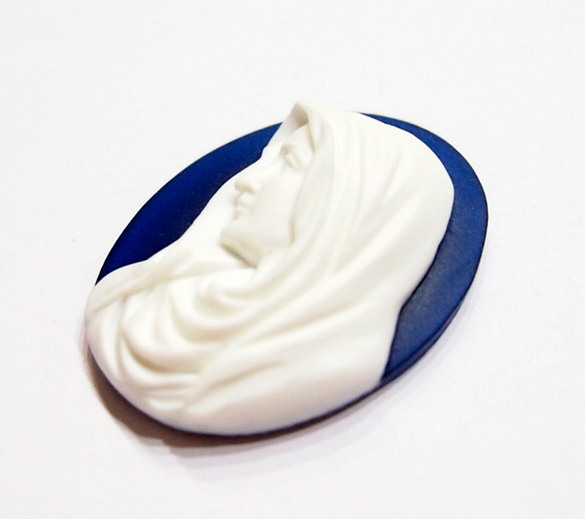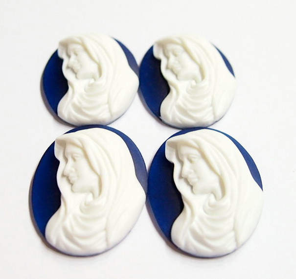 You are buying 4 of 40 mm x 30 mm White over Dark Blue Virgin Mary Cameos. They are of the Beautiful Virgin Mary Portrait facing left. The details are very sharp and stand away from the background, giving it a 3-D effect. They are white in color over a Portland Dark Blue color background. They measure 40 x 30 mm and are simply gorgeous. They look very detailed for their size. I have lots of Great Bails, Bracelets, Cameos, Chains, Connectors, Jump Rings, Lockets, Pendants, Pins, Rings & Settings so, just look at all my listings. I have similar Cameos in other Colors & in a group of 10 Colors as shown in the third from last picture item #360601358717, sold separately. I also offer a group of 8 Angel Cameos in 40x30 mm as shown in the second from last picture item #111126962531, sold separately. Also offered is a group of 4 Colors in 40x30 mm Full Body Virgin Mary Cameos as shown in the last picture item #360701673125, sold separately. I have several Colors of 25x18 mm Cameos with this same theme.