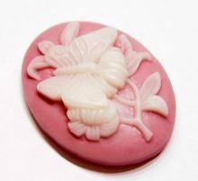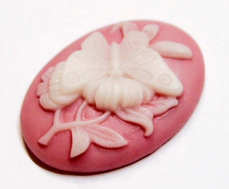 You are buying 4 of 40 mm x 30 mm White over Pink Butterfly on Flowers Cameos. These are so gorgeous, they look like the Wedgwood Jasper ware colors with that color of White Butterfly and flowers on a pink background. The white butterfly has gracefully landed on flowers and this takes up most of the whole cameo. I have several different settings these will fit in. They fit into the 40 mm x 30 mm settings I have listed. These are pretty fabulous. They measure 40 mm x 30 mm. They look very detailed for their size. I have lots of Great Bails, Bracelets, Cameos, Chains, Connectors, Jump Rings, Lockets, Pendants, Pins, Rings & Settings so, just look at all my listings.. I have several other Flower Cameos in this same color scheme.