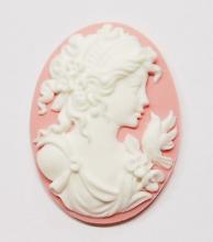 You are buying 4 of 40 mm x 30 mm White over Pink Grecian/Muse Floral & Bird Cameos. These are so gorgeous, these are of a beautiful Mythology Muse or Grecian woman in a gown with her hair with a headband and a bird in front of her, they are perfect. The woman is white on a Pink color background. The molding process of these are just great, no flaws. I have several different settings these will fit in. These are pretty fabulous. They look very detailed for their size. I have lots of Great Bails, Bracelets, Cameos, Chains, Connectors, Jump Rings, Lockets, Pendants, Pins, Rings & Settings so, just look at all my listings. I have these in 5 other Colors & in a group of 6 Colors as shown in the last picture item #110911248601.