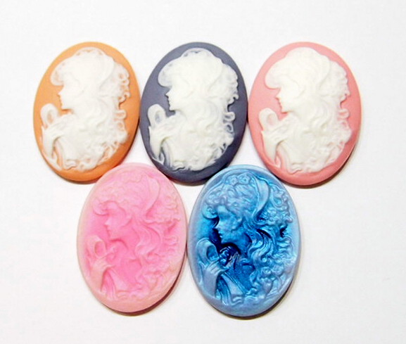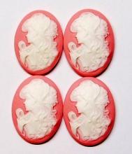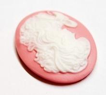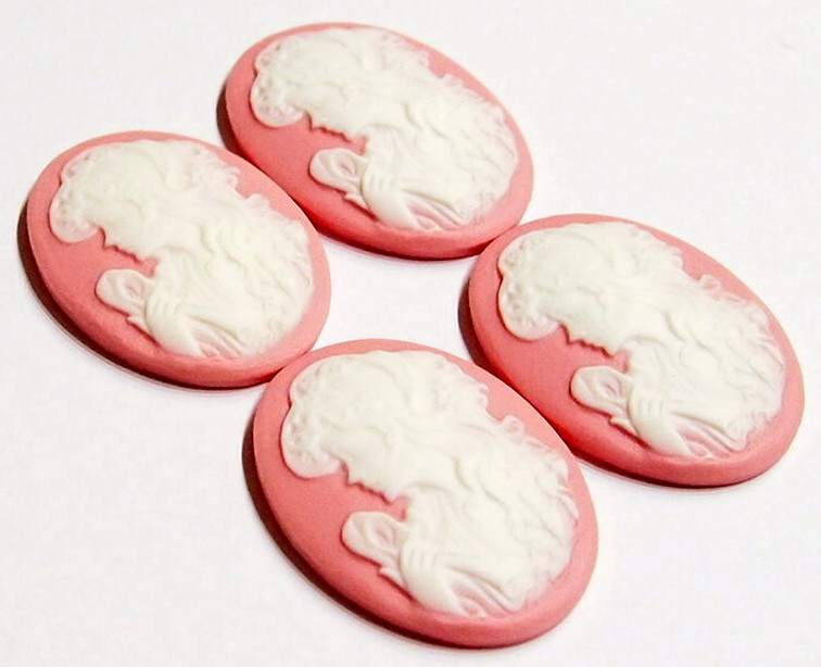 You are buying 4 of 40 mm x 30 mm White over Pink Left Facing Curly Hair Lady Cameos. These are of a Long Curly Hair Victorian Lady, very elegant facing Left with her shash in her hand, the molding is very well done. They are a gorgeous White on Pink Color background. They measure 40 mm x 30 mm. They look very detailed for their size, in fact, the woman stands out from the background to give it a 3-D look. I have lots of Great Bails, Bracelets, Cameos, Chains, Connectors, Jump Rings, Lockets, Pendants, Pins, Rings & Settings so, just look at all my listings. I have these in 4 other Colors & in a group of 5 Colors as shown in the last picture item#360471677873.